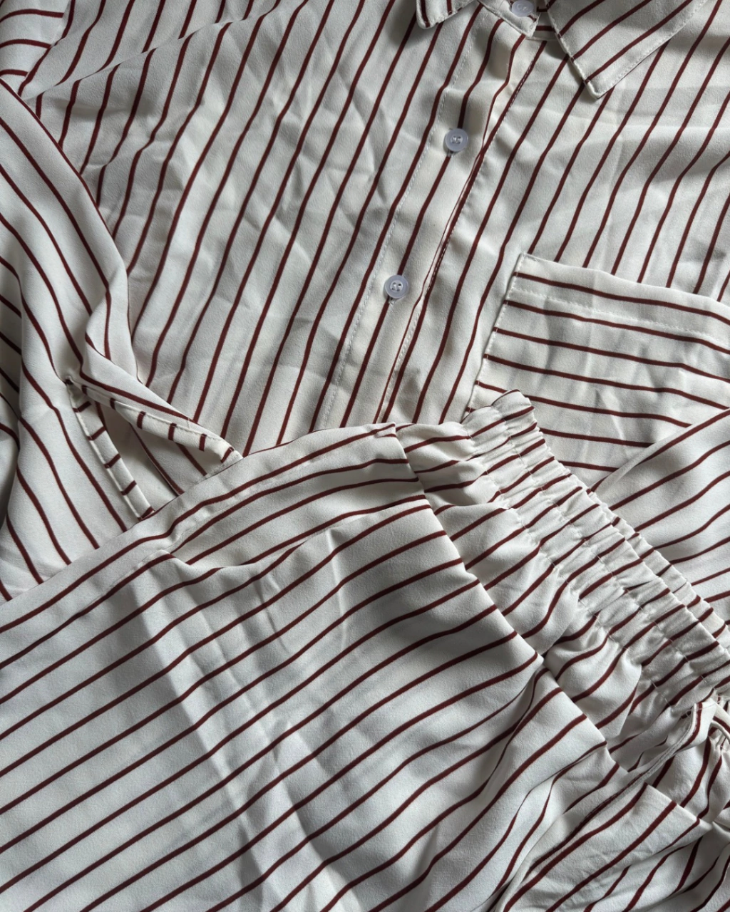 Conheça o Conjunto Listra, uma peça única e versátil que veste tamanho único com conforto e estilo. O conjunto é composto por um short forrado com elástico, garantindo ajuste perfeito e liberdade de movimento. A camisa possui botões, bolso frontal e punhos que adicionam charme e funcionalidade à peça. Ideal para quem busca praticidade e elegância em um só look!